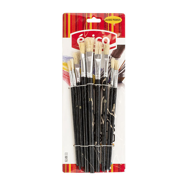 "Set de pinceles Epico: 9 unidades surtidas, ideales para pinturas y manualidades. Variedad de tamaños y formas para proyectos escolares, artísticos y creativos."