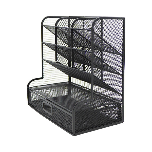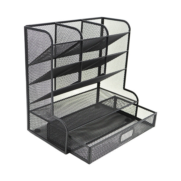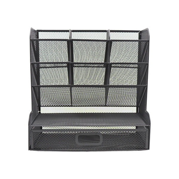 Organizador para escritorio de malla negra con gaveta, con una estructura resistente y fabricado con materiales de alta calidad que garantizan su durabilidad. Este organizador es ideal para mantener tu espacio de trabajo ordenado, ofreciendo compartimentos para tus útiles de oficina y una gaveta para almacenamiento adicional. Su diseño elegante y funcional se adapta perfectamente a cualquier escritorio, optimizando tu eficiencia y organización. ¡Mejorá tu entorno de trabajo con este práctico y duradero organizador de escritorio!