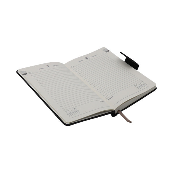 ¡Prepárate para un año organizado con nuestra Agenda 2025 U25 en elegante color negro! Con una página por día y una práctica faja, tendrás espacio más que suficiente para tus citas, eventos y tareas diarias. ¡Mantén tu vida en orden con estilo y funcionalidad!"