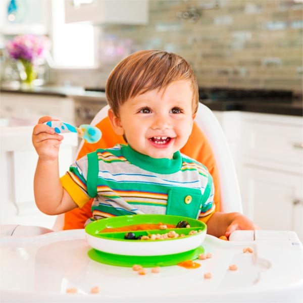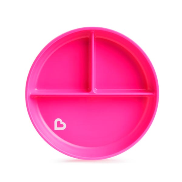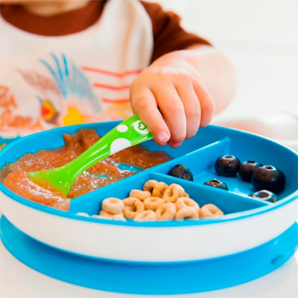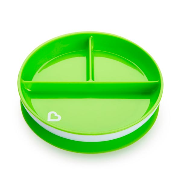 "¡La hora de comer puede volverse complicada con un nuevo bebé que se alimenta a sí mismo y niños pequeños que están aprendiendo su fuerza! Nuestra placa cuenta con una sólida base de succión que se adhiere a la mayoría de las superficies y una pestaña de liberación rápida para facilitar su uso."
