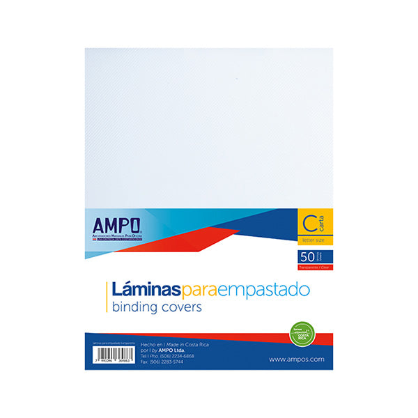 Lamina para empastar tamaño carta transparente 50 unidades Ampo