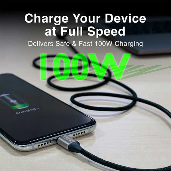 Alta velocidad y durabilidad. Este cable USB-C a USB-C ofrece carga de hasta 100W, transferencia de datos a 40Gbps y salida 8K a 60Hz. Ideal para dispositivos con Thunderbolt 3/4. Trenzado en nailon, con carcasa de aluminio y chip E-Mark. Resistente, flexible y sin enredos.