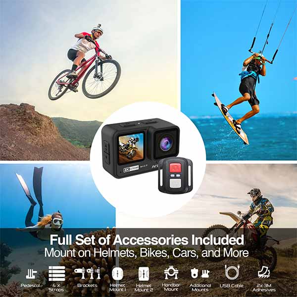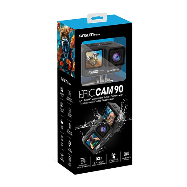 La Epic 90 redefine la captura de aventuras, ofreciendo video 4K a 60 fps y fotos de 24 MP con EIS avanzado de 6 ejes para una estabilización mejorada, garantizando imágenes fluidas y de alta calidad incluso en los entornos más dinámicos. Gracias a su resistencia al agua integrada, la cámara soporta profundidades de hasta 21 metros, eliminando la necesidad de una carcasa adicional. Esto la convierte en la compañera ideal para deportes extremos, aventuras al aire libre, exploración submarina, ciclismo y mucho más. Equipada con dos pantallas: una trasera IPS de 2.0" para una reproducción de video fluida y una frontal IPS de 1.3" para selfies rápidas, la Epic 9190 ofrece rendimiento y comodidad. La intuitiva interfaz táctil permite una navegación sencilla, mientras que el control remoto incluido te asegura capturar cada momento con precisión y facilidad.