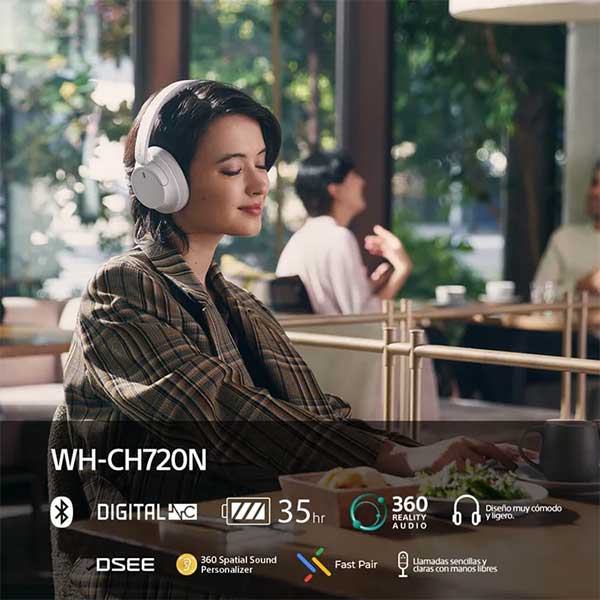 Audífonos cerrados con diafragma dinámico de 30 mm, calidad de audio nítida y cancelación de ruido. Incluyen DSEE, modo ambiente, control de volumen y uso pasivo. Batería de hasta 50 h, carga por USB y conexión Bluetooth 5.2. Compatibles con cable de 1.2 m y mini enchufe bañado en oro.