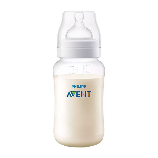 Nuestro biberón anticólicos se ha diseñado para evitar que el aire entre en la barriguita del bebé, a fin de disminuir los cólicos, las molestias y las interrupciones durante la alimentación. Gracias a su válvula anticólicos integrada, el aire no entra en la barriguita del bebé. Diseñado para una alimentación ininterrumpida. Clínicamente comprobado que reduce los cólicos y los malestares. 1 biberón 11 onzas / 330 ml Tetina de flujo medio