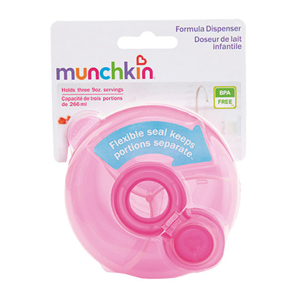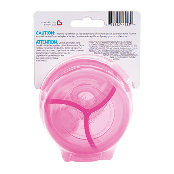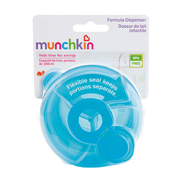 Dispensador de fórmula. Marca Munchkin. Edad de uso recomendada a partir de los 4M+. Rendimiento superior: el sello flexible garantiza que el polvo permanezca seguro en cada sección. Tres divisiones para contener la fórmula previamente medida, para botellas de hasta 9 oz. Diseño moderno y colorido. Sin BPA. Apto para lavavajillas