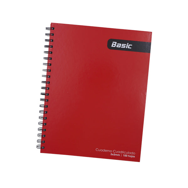 Cuaderno cuadriculado 5mm tapa dura 100 hojas color rojo Basic.