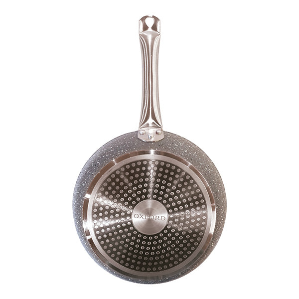 Sartén, aluminio forjado, 24 cm, interior con recubrimiento de mármol, exterior color gris, mango de acero inoxidable, suave al tacto, fondo de inducción. La mejor manera de cocinar sin necesidad de utilizar exceso de grasa.