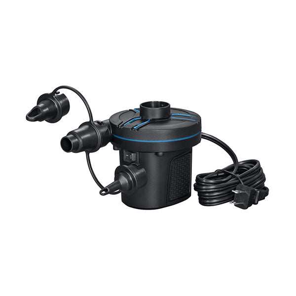 "Nuestra bomba eléctrica de tamaño compacto, con dimensiones de 11,3 cm x 10,1 cm x 11 cm, ofrece un flujo de aire máximo de 680 L/min y es capaz de inflar artículos hasta 0,55 PSI / 0,038 BAR. Con voltaje de 110-120V~60Hz y 0.95A, esta bomba cuenta con una gran cámara de aire que permite un inflado rápido. Es perfecta para inflar y desinflar rápidamente una amplia variedad de productos inflables. Además, incluye 3 adaptadores de válvula para adaptarse a casi todas las válvulas de inflado. El contenido del paquete incluye 1 bomba eléctrica y 3 adaptadores de válvula."