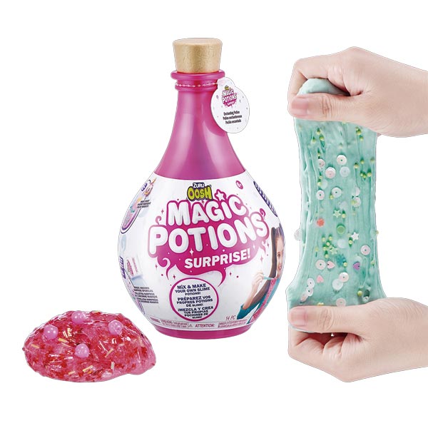 Desde destellos hasta limo, ¡hay tanta magia por encontrar! La nueva potions slime surprise de ZURU OOSH añade un toque de magia a la fabricación de slime con tus propias manos. Hay 2 botellas de pociones mágicas diferentes, cada una con dos pociones sorpresa para crear en su interior, cada poción fascinante viene con su propia base pegajosa o en polvo, tres accesorios diferentes para agregar, botellas de almacenamiento y una receta mágica fácil de seguir. ¡Que la magia comience con Pociones! Recomendado para mayores de 6 años.