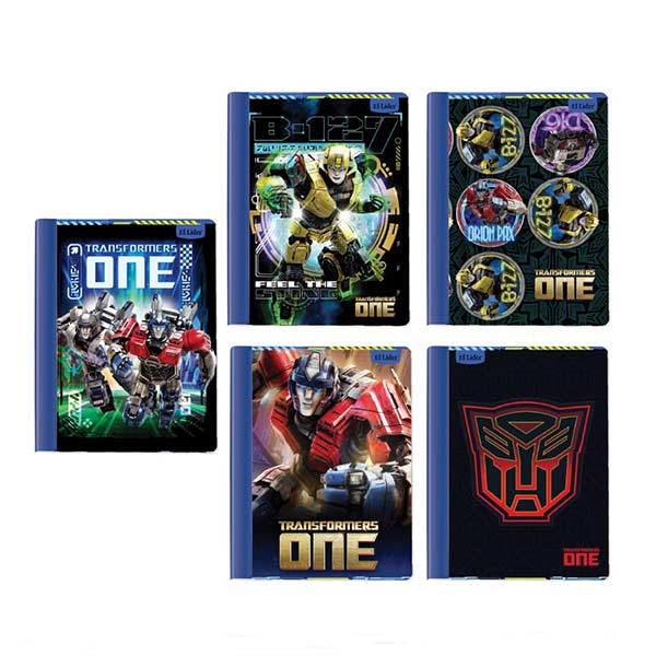 Contiene 52 hojas de 19x24 cm, ideal para tareas y notas escolares. Producto surtido, con portadas variadas de la colección Transformers, enviadas al azar. Perfecto para fanáticos que buscan funcionalidad con estilo.