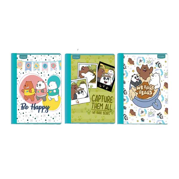 Contiene 52 hojas de 19x24 cm, ideal para tareas y notas escolares. Producto surtido con portadas variadas de la colección We Bare Bears, enviadas al azar. Perfecto para fanáticos que buscan funcionalidad y un diseño adorable.
