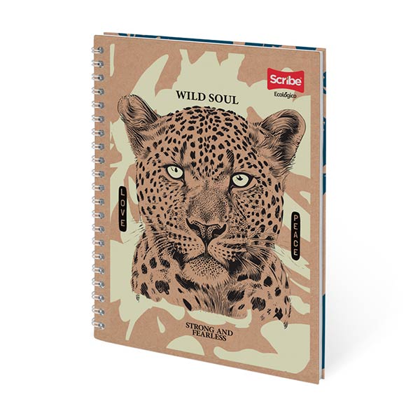 Cuaderno Scribe con espiral doble, cuadro de 7 mm y 100 hojas. Presenta portadas con diseños ecológicos y contraportadas impresas. Nota: producto surtido; recibirá una de las portadas disponibles.
