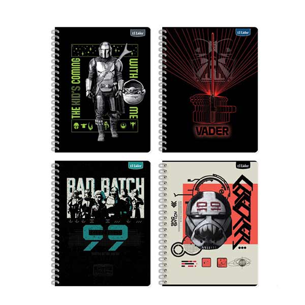 Contiene 100 hojas de 22x28 cm, ideal para notas y tareas escolares. Producto surtido, con portadas variadas de la colección Star Wars, enviadas al azar. Perfecto para fanáticos de la saga que buscan funcionalidad y estilo.
