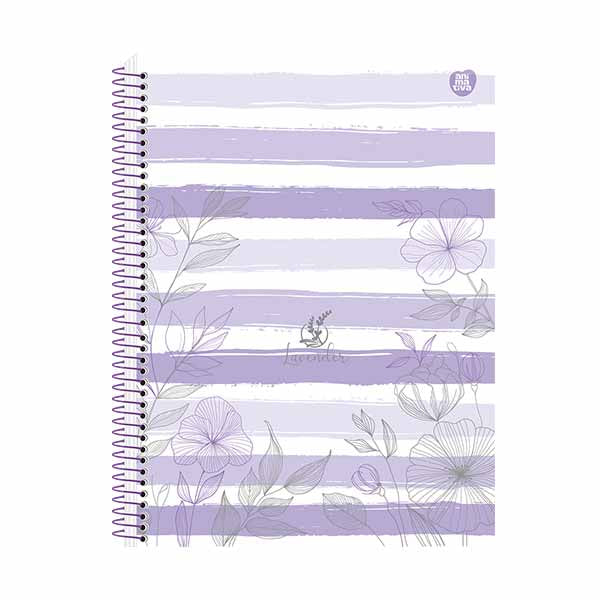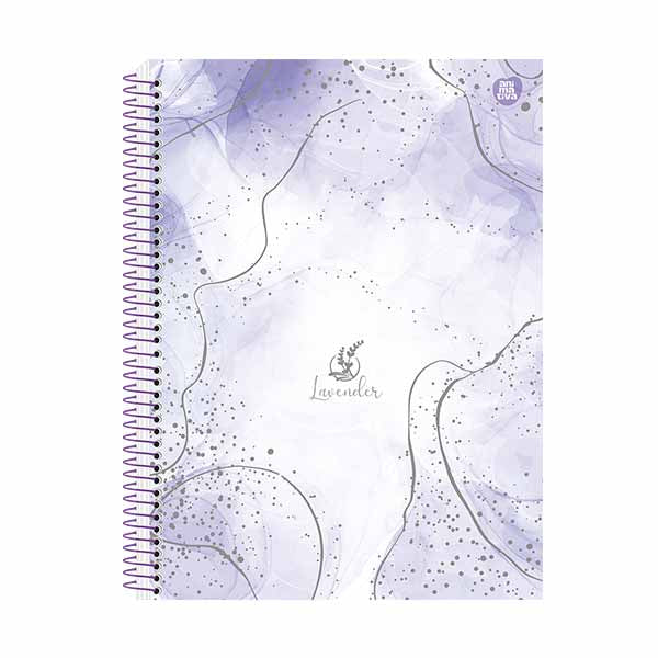 El cuaderno de resortes Lavender tiene tapa dura y contiene 80 hojas. Su diseño se inspira en la lavanda, una planta sagrada para los indios americanos que se cree que atrae el amor y una larga vida. El cuaderno presenta degradados de color lila, detalles de "hot stamping" y efectos holográficos para brindar sofisticación. Incluye stickers y bolsa de papel porta documentos. Producto surtido, la portada puede variar.