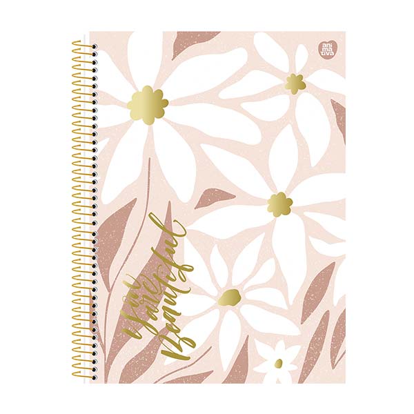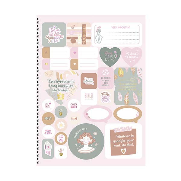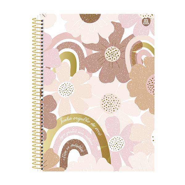 El cuaderno de resortes Mulher ofrece un estilo renovado con un tono monocromático y un acabado dorado sofisticado. Con 80 hojas y mensajes positivos, es perfecto para expresar estilo y mantenerse organizado. Además, incluye stickers y una bolsa de papel porta documentos para mayor practicidad.