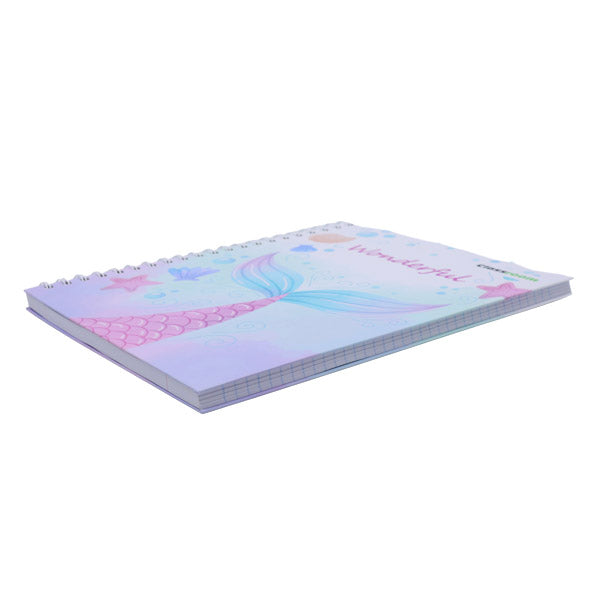 Cuaderno de resortes con 100 hojas rayadas bond de 70 gramos con diseño "Sirena", perfecto para apuntes, tareas o ideas creativas. Resistente y práctico, ideal para uso escolar, universitario o personal.