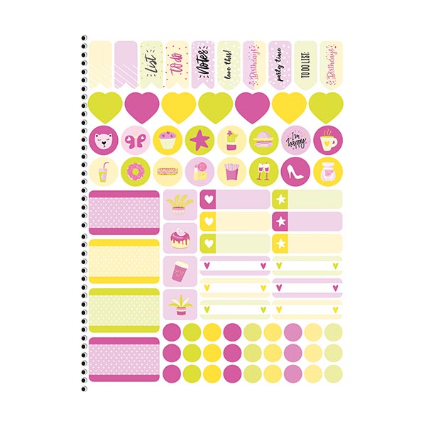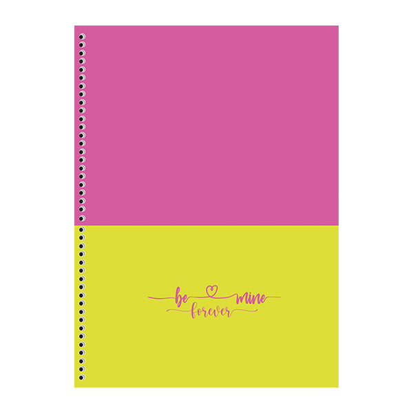 4 portadas, acabado metalizado, espacio para colocar información relevante, stickers y porta documentos de papel , 80 hojas, tapa dura espiral, hojas con detalle en colores neón.