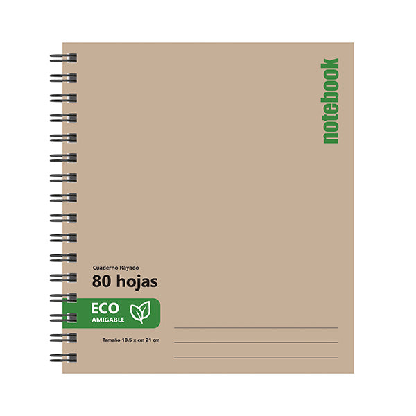 Cuaderno kraft Disponible en tapa flexible Formato: resorte Tamaño: 1/2 carta Cantidad páginas: 80 hojas Las imágenes son de referencia, los colores y diseños podrían variar según disponibilidad. Puede recibir uno de los estilos mostrados.