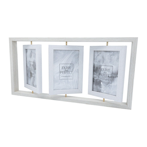 "Portaretrato versátil para 3 fotos, liviano y adaptable. Perfecto para embellecer su dormitorio, puerta de dormitorio, oficina, cocina o sala de estar. Ideal como regalo atento para cualquier ocasión. Dimensiones: 44x22x3 cm."