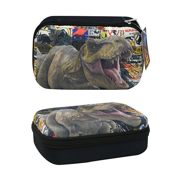 "Estuche Rígido de Jurassic para Útiles Escolares: Este estuche de alta calidad está fabricado con material resistente al agua y a los arañazos. Su interior con tela de punto protege tus pertenencias de daños. Con divisores para mantener los bolígrafos organizados y un compartimento especial para tus artículos. Se abre ampliamente para facilitar la búsqueda. Ligero y resistente para uso diario, cabe en casi cualquier bolso. Versátil y duradero, ideal para lápices u otros fines como estuche de viaje o cosméticos. Medidas: 8.5" x 5.25" x 2.5"."