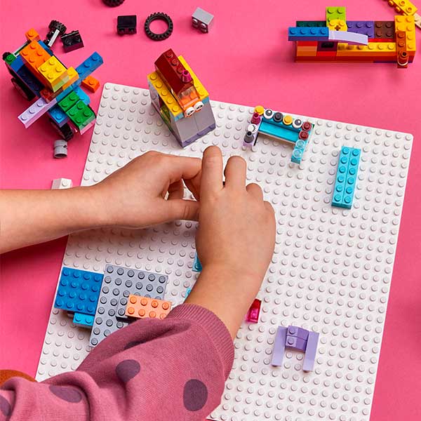 La Base Blanca de 32x32 espigas abre las puertas de un deslumbrante mundo de imaginativas posibilidades: desde maravillosas tierras nevadas y soleadas pistas de esquí en la montaña hasta paisajes cubiertos de hielo con fascinantes animales árticos. Además, una vez finalizada la etapa de construcción, la sólida superficie con gran capacidad de sujeción proporciona a los niños un modo seguro de transportar y exhibir sus ingeniosas creaciones. Incluye 1 pieza.