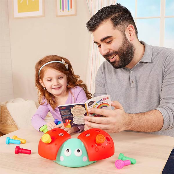 Explora colores y números con la simpática Mariquita Educativa de Battat: incluye 10 clavijas numeradas, fáciles de manipular, y un libro de juego ilustrado que narra una divertida aventura floral. Inserta las clavijas para aprender a contar y reconocer colores mientras se desarrolla la motricidad fina y la coordinación ojo-mano. Con espacio de almacenamiento bajo las alas de la mariquita, este juguete resistente promueve el juego independiente y refuerza habilidades cognitivas tempranas en niños desde los 18 meses