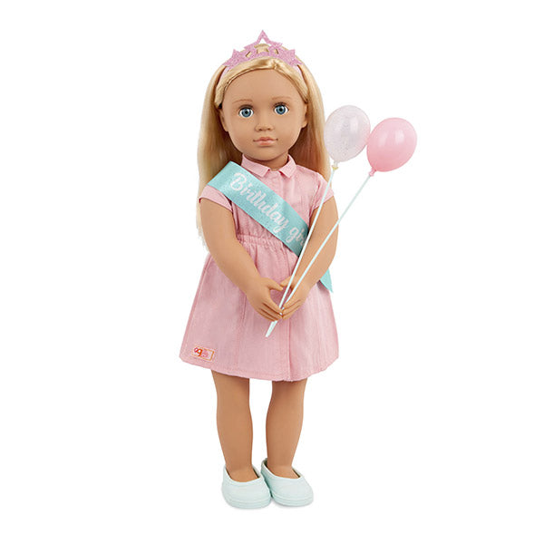¡Prepárate para explorar la moda y la diversión con Brenna! Esta encantadora muñeca Our Generation de 46 cm está lista para deslumbrar con su estilo único y su personalidad vibrante.