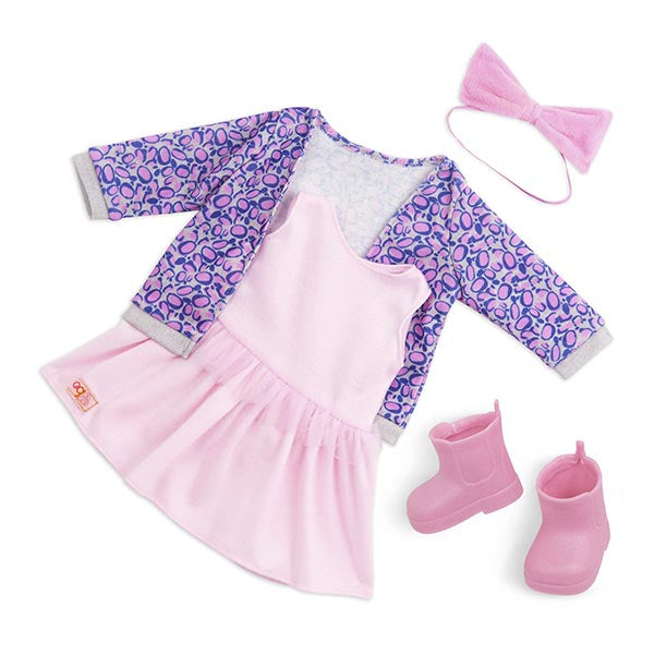 ¡Sumérgete en estilos dulces y diversión de la moda con Joana! Esta encantadora muñeca Our Generation de 46 cm es perfecta para el tiempo de juego, con un cuerpo suave que se puede abrazar y características realistas que encantarán a los fanáticos de las muñecas. Sus hermosos ojos grises se abren y cierran, y su cabello claro ondulado es ideal para peinar de muchas maneras. Joana luce un conjunto adorable que incluye un vestido, un suéter, un par de botas rosadas y una tiara para darle un toque extra de estilo. Además, su conjunto cuenta con cierres de fácil apertura para que puedas vestirla rápidamente para cualquier ocasión. ¡Con Joana, podrás mezclar, combinar y crear looks más elegantes en cada aventura! Nuestras muñecas Our Generation son un regalo ideal para niños a partir de 3 años, fomentando la imaginación y permitiéndoles crear sus propias historias únicas.