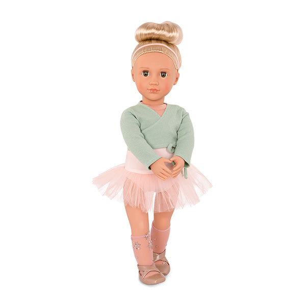 Posibilidad de cambiar tu estilo utilizando una amplia gama de ropa y accesorios disponibles en la serie OG! Muñeca de 46 cm de la serie OurGeneration. Una bailarina de ojos verdes con el pelo recogido en un bonito moño. Cuerpo suave. Brazos, piernas, cabeza y párpados móviles. ¡Posibilidad de cambiar tu estilo utilizando una amplia gama de ropa y accesorios disponibles en la serie OG! Incluye: Leotardo de ballet con falda de tul, bolero de ballet anudado, calcetines hasta la rodilla transparentes con sutiles adornos brillantes, zapatillas de ballet y diadema brillante.. Los acesorios se venden por separado. Edad recomendada para mayores de 3 años.