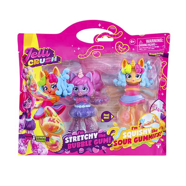 "Bubba Gumm y Gummi Sours son dos adorables muñecos incluidos en el paquete Jelli Crush Doublicious 2. Estos muñecos son deliciosos, tiernos, suaves y elásticos, con una sensación de "sentirse bien". ¡Las niñas pueden apretar, aplastar y estirar los increíbles cuerpos de Bubba Gumm y Gummi Sours para descubrir lo que hay dentro de ellos! Estos muñecos pueden estirarse hasta 3 veces su tamaño y luego volver a su forma original. Recomendados para niños de 4 años en adelante, ¡prepárate para una diversión increíble con estos juguetes únicos!"
