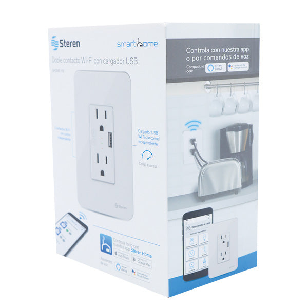 App Steren Home: Su uso se administra por medio de nuestra app Steren Home, en donde podrás realizar las configuraciones que necesites, compartir el control con otros usuarios, programar horarios, y más.