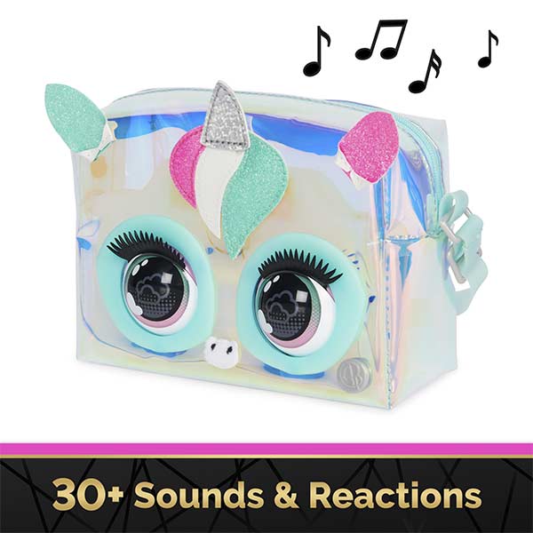 ¡Expresa tu estilo con el monedero holográfico Pets! Estas elegantes mascotas interactivas responden al tacto, parpadean y emiten más de 30 sonidos y reacciones. Con un diseño que destaca por su tela holográfica transparente, un mechón, un cuerno y orejas brillantes, además de ojos de arte pop con pestañas revoloteantes, es un accesorio único. Incluye 3 baterías AAA y se vende por separado. Recomendado para mayores de 5 años. ¡Lleva tu estilo al siguiente nivel con este increíble monedero!