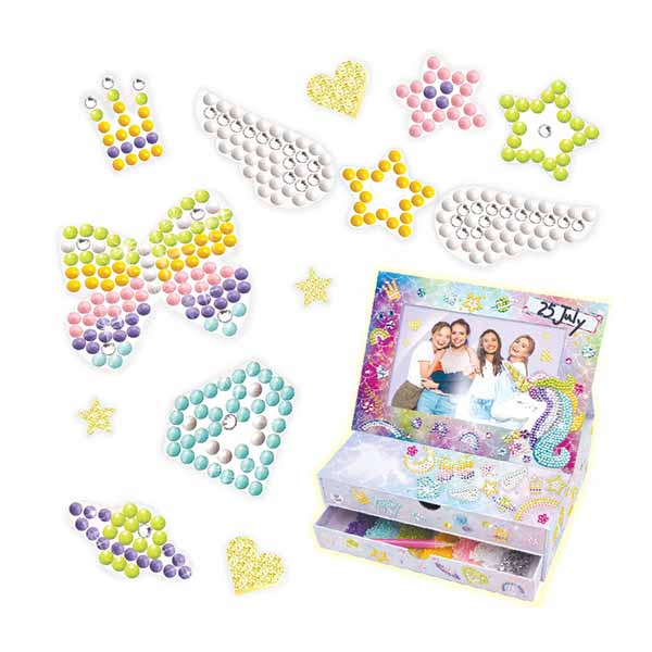 Decora un marco de fotos de unicornio con más de 2000 gemas de colores. Ideal para niñas mayores de 8 años que aman el brillo y la creatividad. ¡Un proyecto divertido y lleno de estilo!