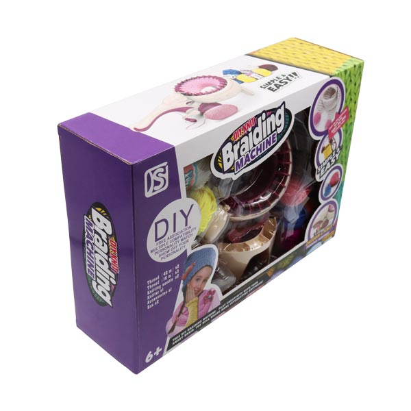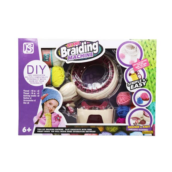 Set de fabricación de pulseras hecho de plástico. Incluye 5 hilos de colores, accesorios y una máquina para hacer pulseras. No requiere baterías. Recomendado para niños y niñas mayores de 6 años."