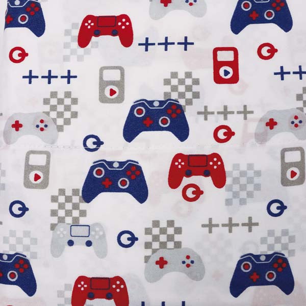 Set de sabanas 100% poliéster. 3 piezas que incluye sabana plana, sabana con elastico y 1 funda para almohads.Tamaño: twin. Color: Blanco. Estampado: game