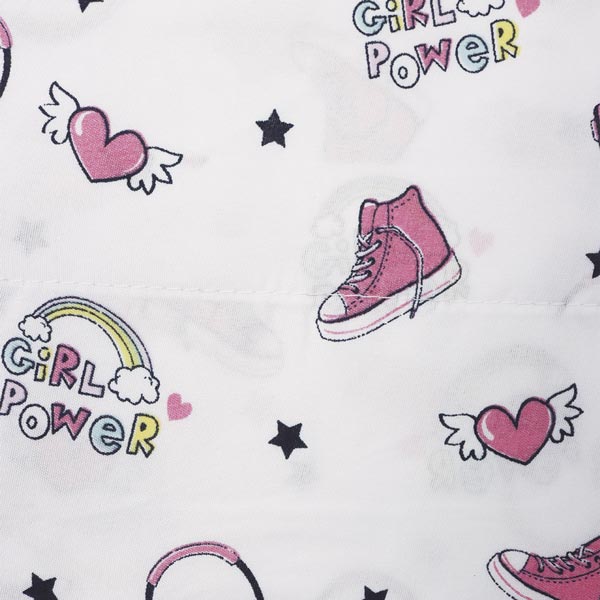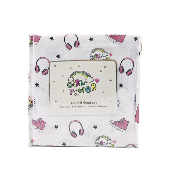 Set de sabanas 100% poliéster. 4 piezas que incluye sabana plana, sabana con elastico y 2 fundas para almohadas.Tamaño: twin. Color: Blanco. Estampado: power