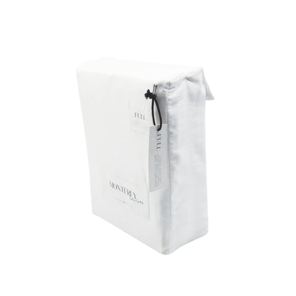 Juego de sábanas de microfibra de primera calidad incluye sábana encimera, sábana bajera ajustable y funda de almohada. 100% poliester. Color blanco. Tamaño full