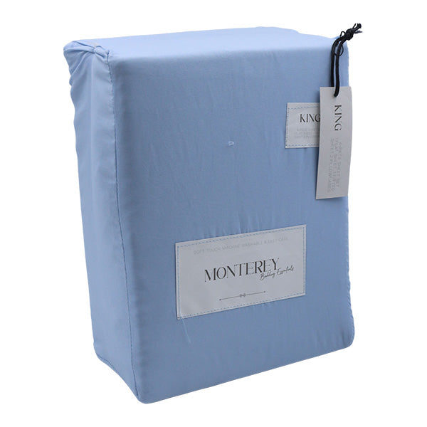 Juego de sábanas de microfibra de primera calidad incluye sábana encimera, sábana bajera ajustable y funda de almohada. 100% poliester. Color azul. Tamaño king