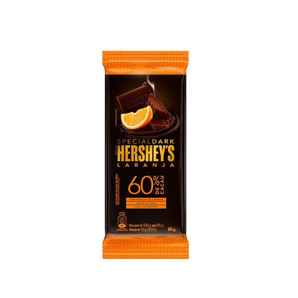 Chocolate Hershey 60% cacau special dark naranja 85 gramos.