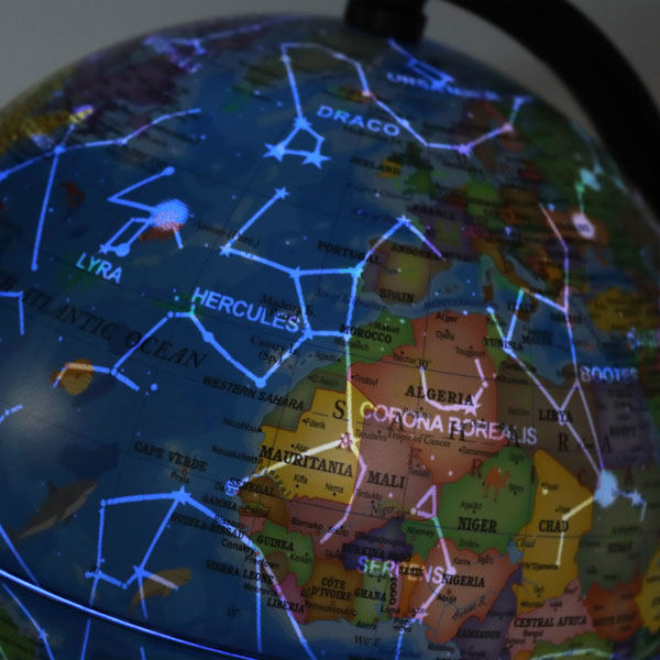 Ultimate Adventure Globe con 203 países y capitales. Incluye mapa estelar con luz LED, luces de ciudades que brillan en la oscuridad y un microscopio UV para explorar culturas, historia y lugares de interés. Ideal para aprender geografía y astronomía desde los 8 años. Incluye folleto educativo.