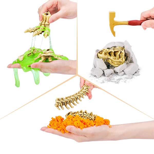 ¡Mega dino fosil está haciendo temblar la tierra! Cava a través de rocas, arena y limo para encontrar los fósiles de dinosaurios. ¡Ensambla las piezas fósiles para dar vida a tu megaesqueleto de dinosaurio! ¿Qué dinosaurio prehistórico encontrarás?. Figura coleccionable