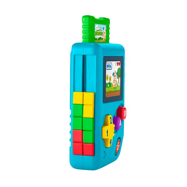 Los pequeños amantes de los juegos podrán divertirse como tú con el juguete de actividades musicales Casete Mi Primer Videojuego de Aprendizaje Ríe y Aprende de FP®. Esta consola portátil de juguete tiene un aspecto real con un botón direccional, botones A y B, un cartucho de juego y una pantalla que se ilumina. A medida que los bebés y los niños pequeños presionen los botones para “jugar” el videojuego, escucharán frases, canciones y sonidos divertidos que les enseñarán las direcciones, los colores, los números y las formas. Presionar, deslizar y alternar los botones y las actividades ayuda a fortalecer la destreza del bebé y la coordinación ojos-manos.