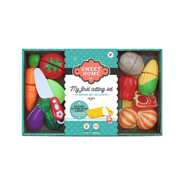 "Sumérgete en el mundo de la imaginación y las habilidades sociales con nuestro set de corte de vegetales. Este juego incluye 10 piezas para cortar, un tablero y un cuchillo de plástico, ofreciendo horas de diversión y aprendizaje creativo. Fabricado con materiales seguros de alta calidad, es adecuado para niños a partir de 3 años. Anima a los pequeños a explorar y desarrollar sus habilidades mientras juegan a ser chefs."s.