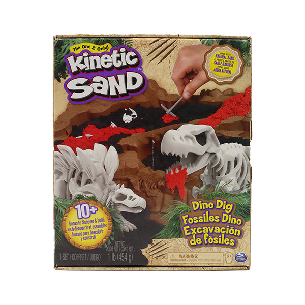 "Descubre el emocionante mundo de los dinosaurios con el Kinetic Sand Dino Dig Playset. Este set incluye 1 lb de arena cinética, herramientas para cavar y 10 huesos de dinosaurio ocultos en la arena negra. A medida que excaves, revelarás arena roja imitando lava y podrás construir tres esqueletos de dinosaurios: un triceratops, un stegosaurus y un tyrannosaurus rex. ¡Despierta tu imaginación y juega con tus esqueletos en tu propia excavación de dinosaurios! Kinetic Sand es la arena sensorial mágica y nunca se seca, lo que la hace perfecta para jugar una y otra vez. Ideal para niños mayores de 3 años."