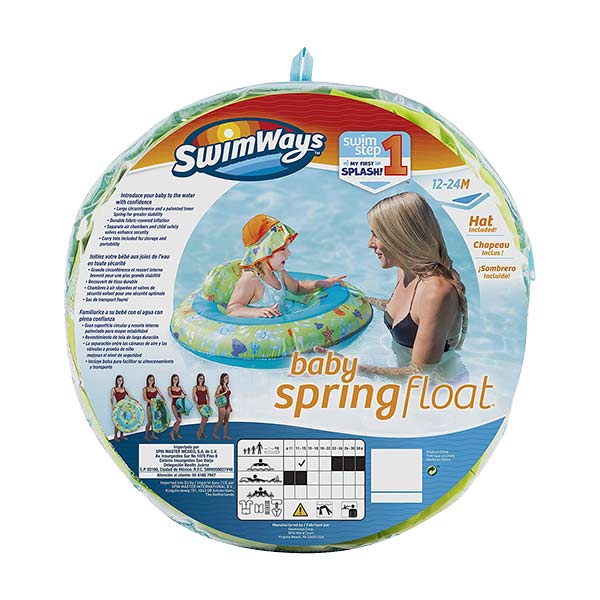 Cubierta de tela y asiento de malla suave para mayor durabilidad y comodidad. Gran circunferencia y un muelle interior alrededor del borde exterior para mayor estabilidad. Las cámaras de inflado dobles y las válvulas de seguridad para niños mejoran la seguridad. Espacio de juego de malla para juguetes y salpicaduras. Se pliega en tres anillos compactos para portabilidad y almacenamiento, es un gran flotador para bebé para viajar. Bolsa de transporte incluida