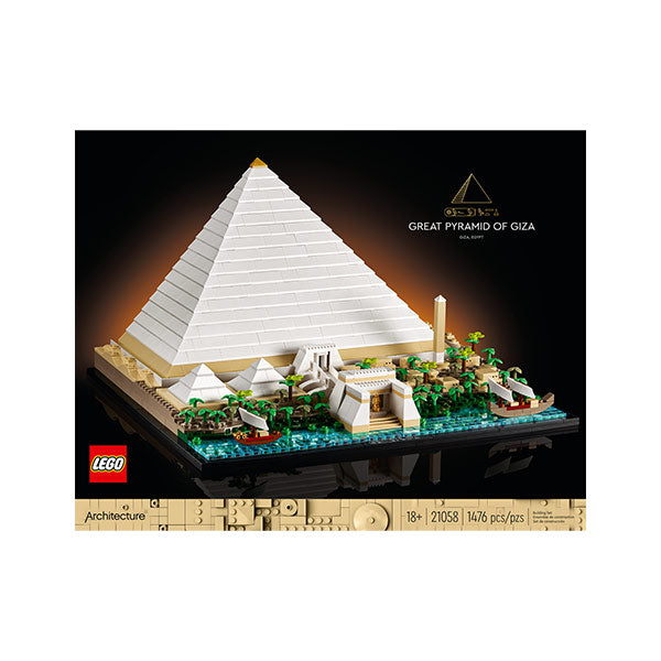 "Da un salto atrás imaginario en el tiempo hasta el siglo XXVI a. C. y descubre cómo se erigió una de las siete maravillas del Mundo Antiguo con el set LEGO® Architecture Gran Pirámide de Guiza (21058). Une las piezas de un modelo en sección de la gran pirámide con hermosos detalles que, además, deja ver sus túneles principales y cámaras, así como el sistema que posiblemente se haya usado para mover los enormes bloques de piedra durante su construcción. Contempla cómo se cree que era esta zona junto al río Nilo en aquella época, con 2 pequeñas pirámides, 2 templos funerarios, estatuas de esfinges, un obelisco y más.