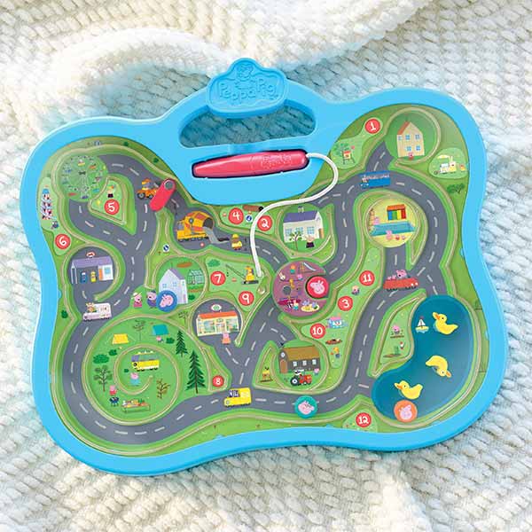Explora la ciudad de Peppa Pig: Utiliza el lápiz para ayudar a Peppa y su familia a desplazarse por la ciudad con este divertido laberinto magnético. Edad recomendada 3+ años.