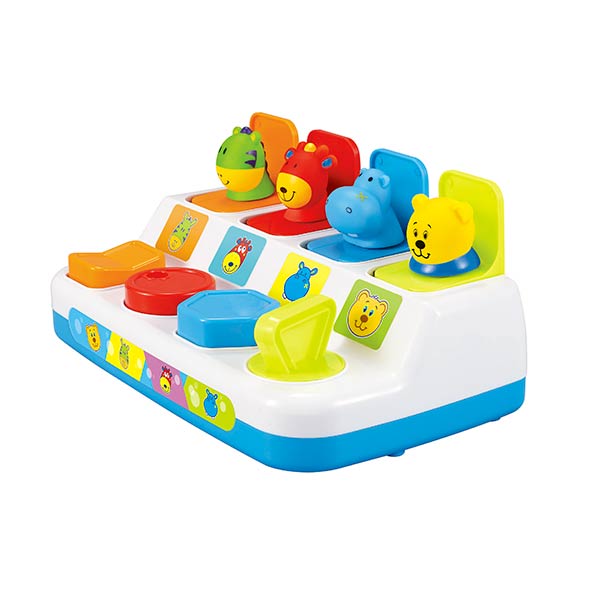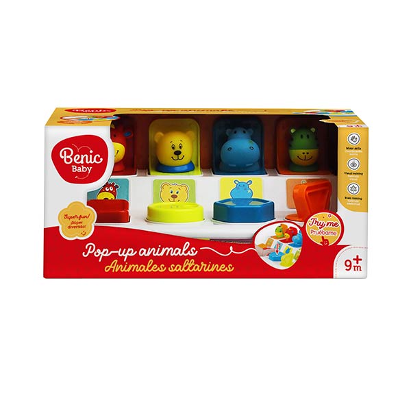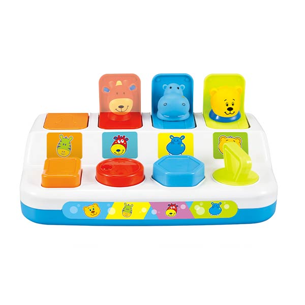 "Este juguete emergente es una experiencia práctica y divertida para bebés y niños pequeños. Presenta 4 adorables animales que estimulan la curiosidad de los niños, mientras exploran formas, colores y causas y efectos. Cada botón se abre de una manera única, lo que ofrece sorpresas gratificantes al empujar, girar, presionar o deslizar. Además de brindar diversión, este juguete ayuda a desarrollar la coordinación motora, visual e intelectual de los niños. Disponible en colores surtidos: naranja y azul, y recomendado para niños a partir de 9 meses, este juguete es una forma emocionante de aprender mientras juegan."