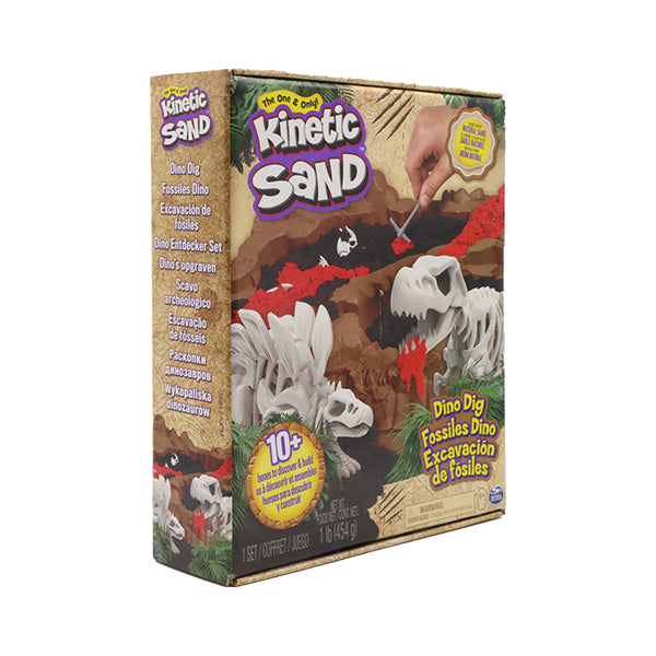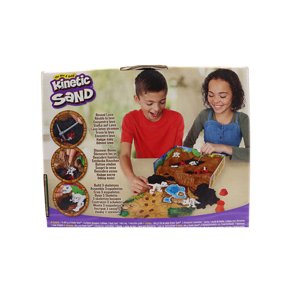 "Descubre el emocionante mundo de los dinosaurios con el Kinetic Sand Dino Dig Playset. Este set incluye 1 lb de arena cinética, herramientas para cavar y 10 huesos de dinosaurio ocultos en la arena negra. A medida que excaves, revelarás arena roja imitando lava y podrás construir tres esqueletos de dinosaurios: un triceratops, un stegosaurus y un tyrannosaurus rex. ¡Despierta tu imaginación y juega con tus esqueletos en tu propia excavación de dinosaurios! Kinetic Sand es la arena sensorial mágica y nunca se seca, lo que la hace perfecta para jugar una y otra vez. Ideal para niños mayores de 3 años."